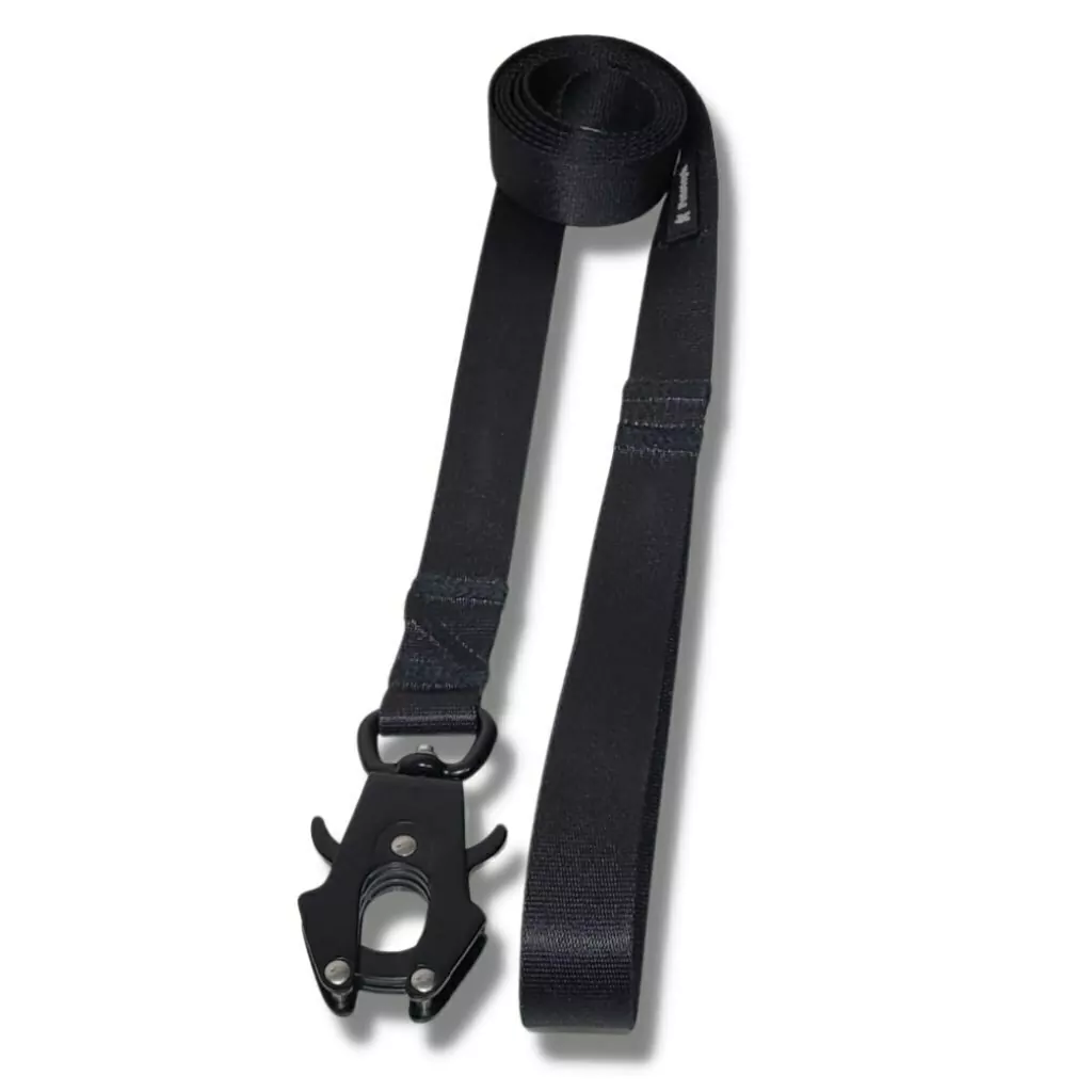 - Mosquetão em ZAMAC com trava de rosca. Seu tamanho é diferente de acordo com o tamanho de Guia